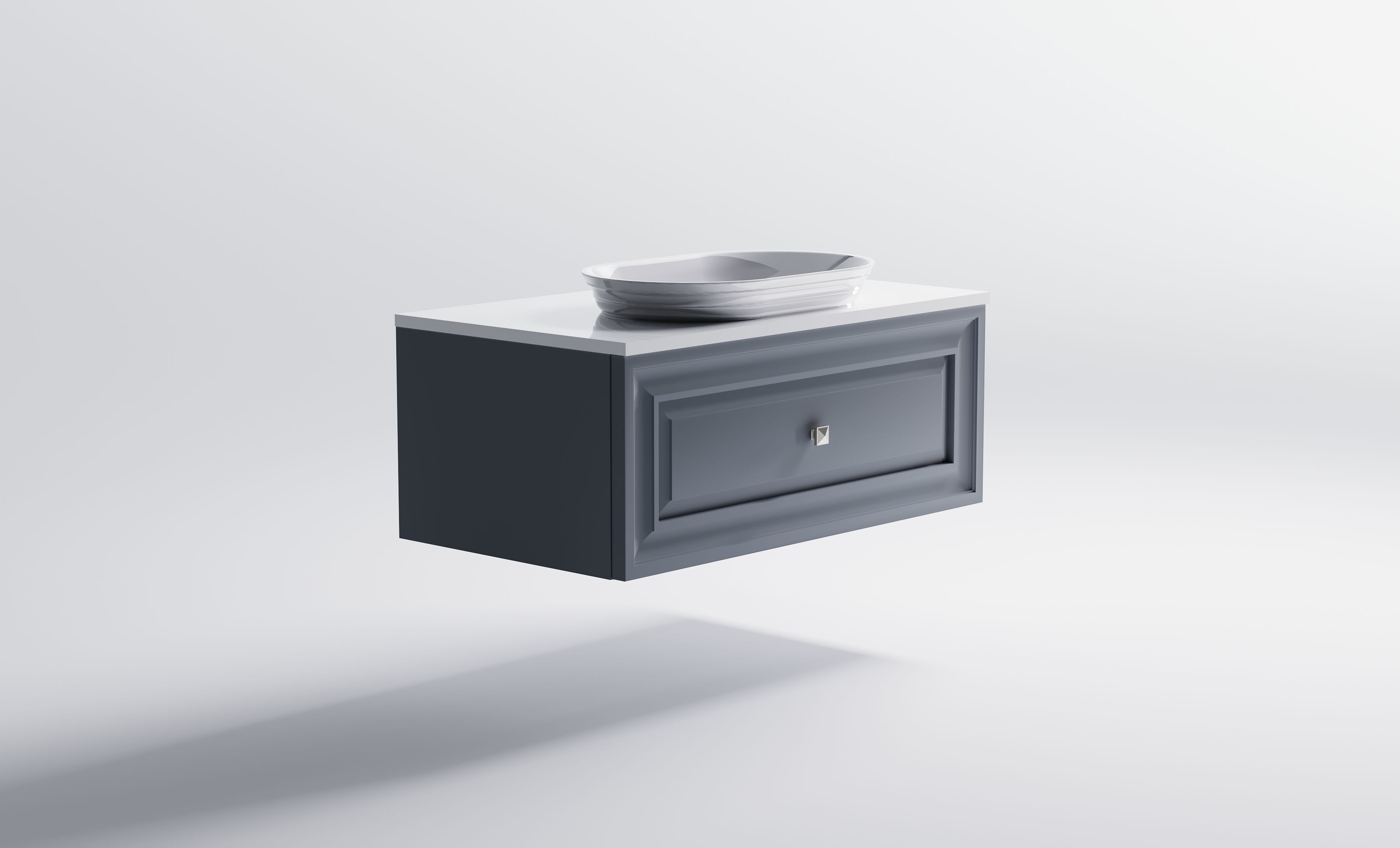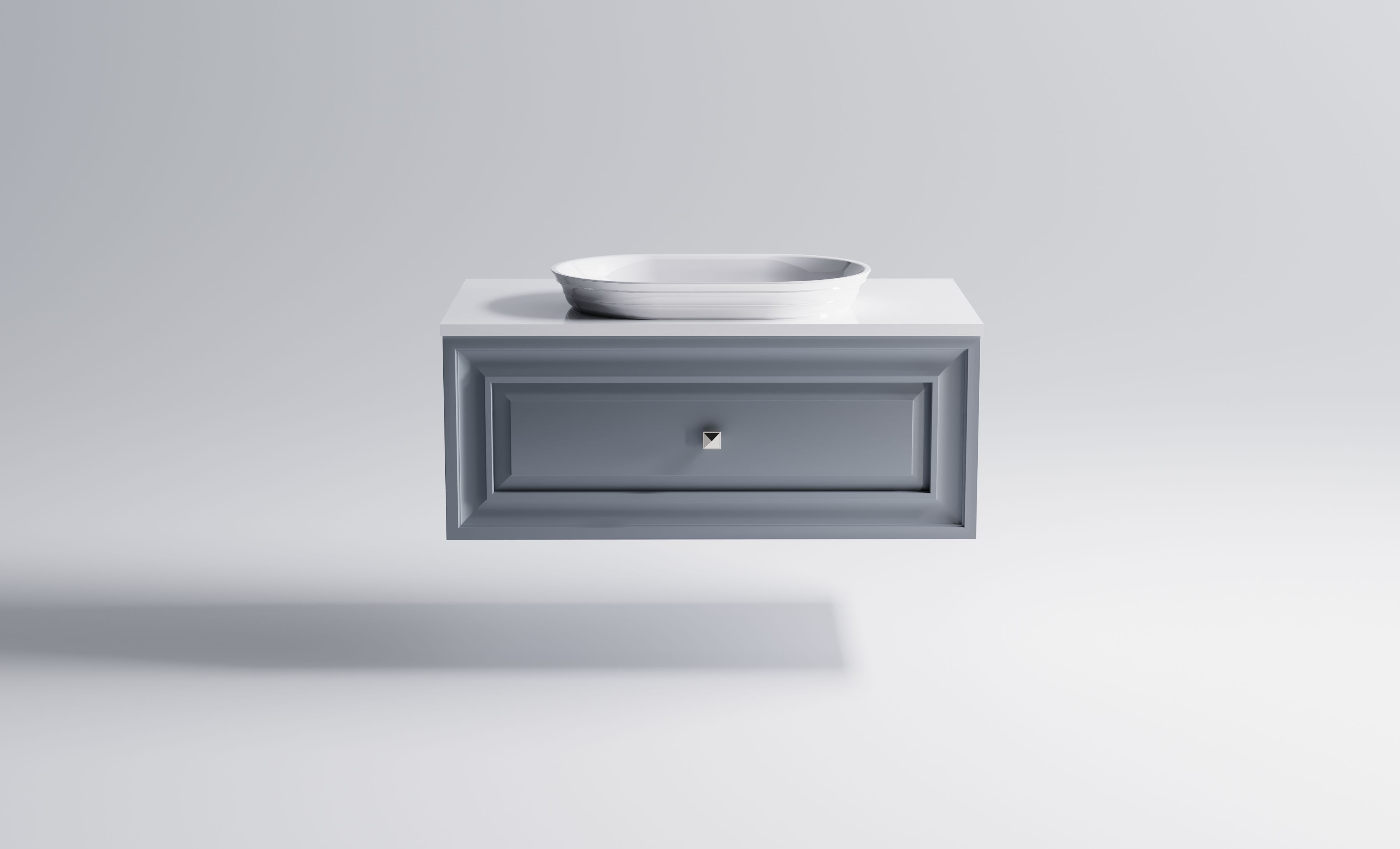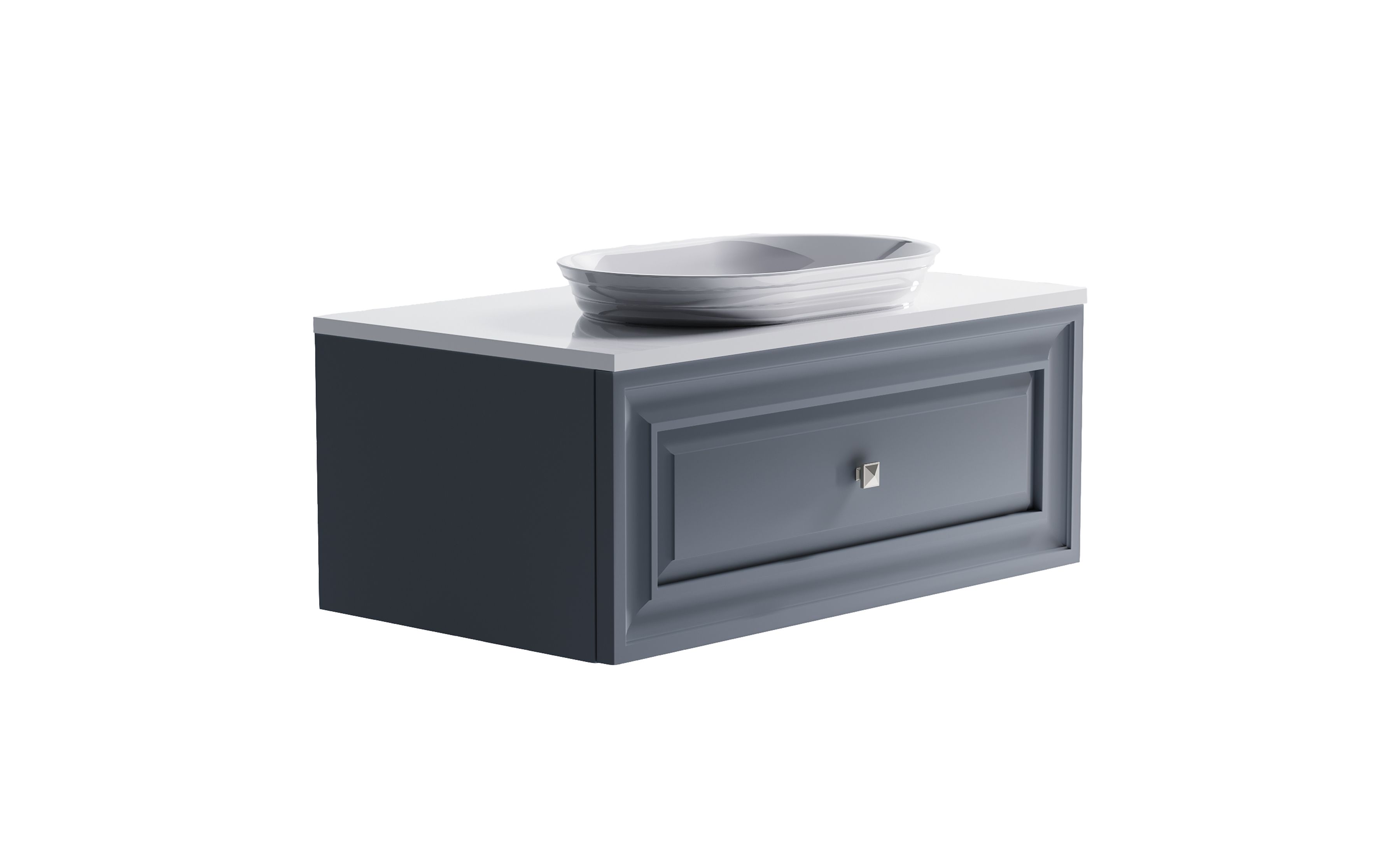 Комплектация: Нижний шкаф Шарм 900 с 1 ящиком с вырезом серо-голубой (NCS S 3005-R80B матовый) + Столешница "Шарм" 900 мм + Раковина "Шарм"