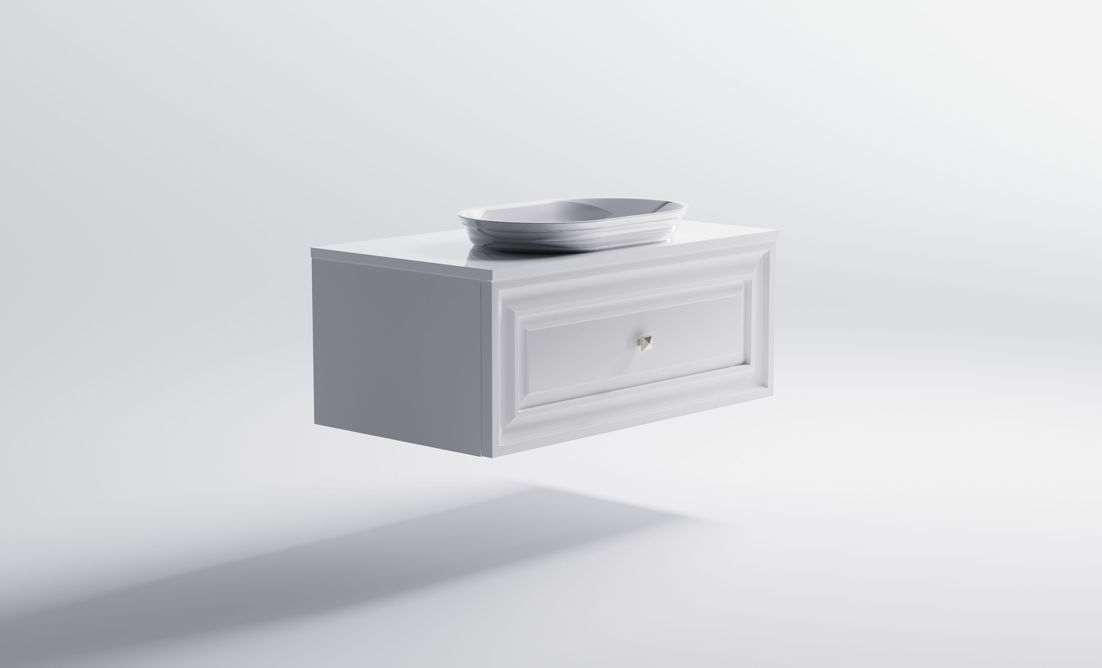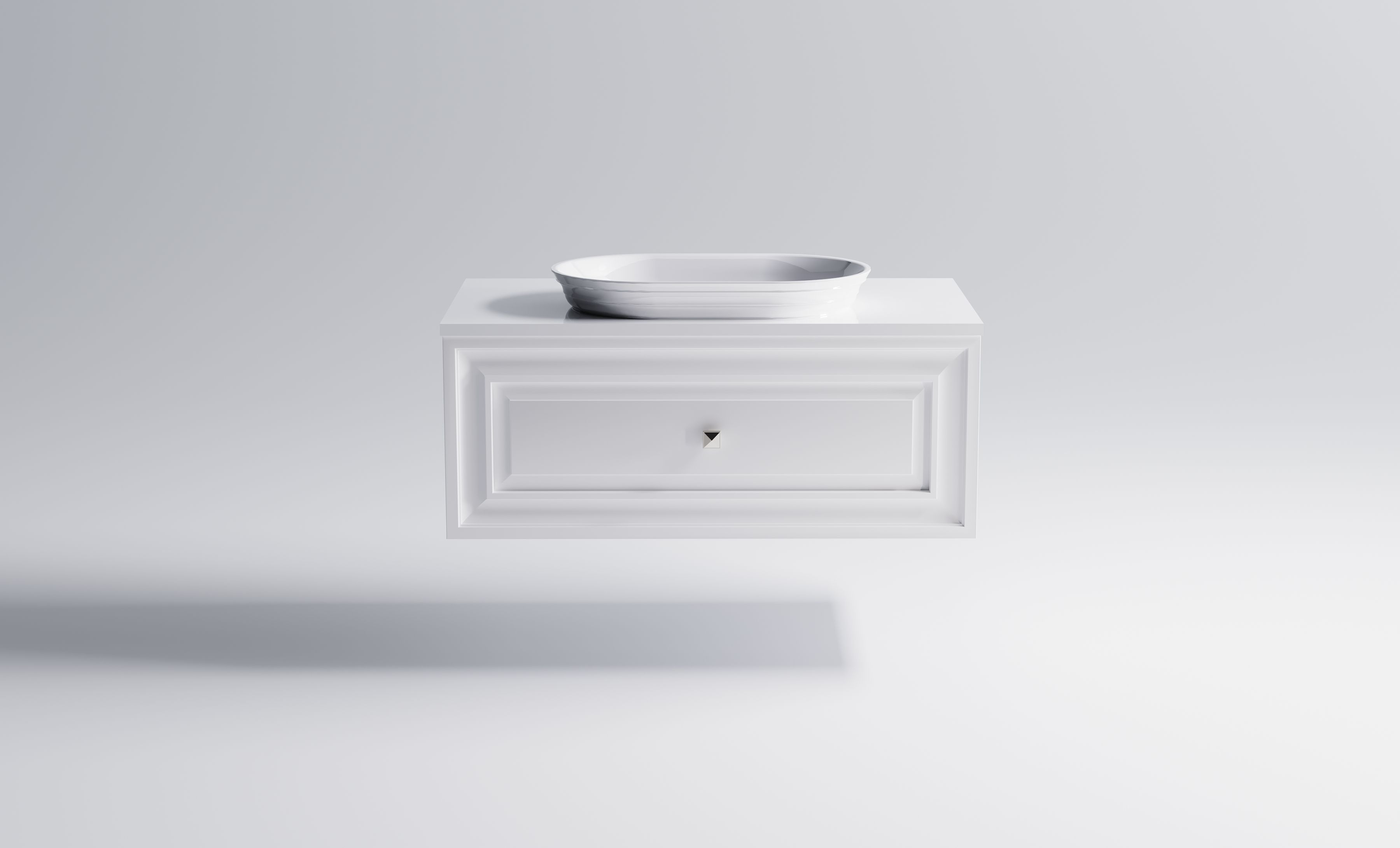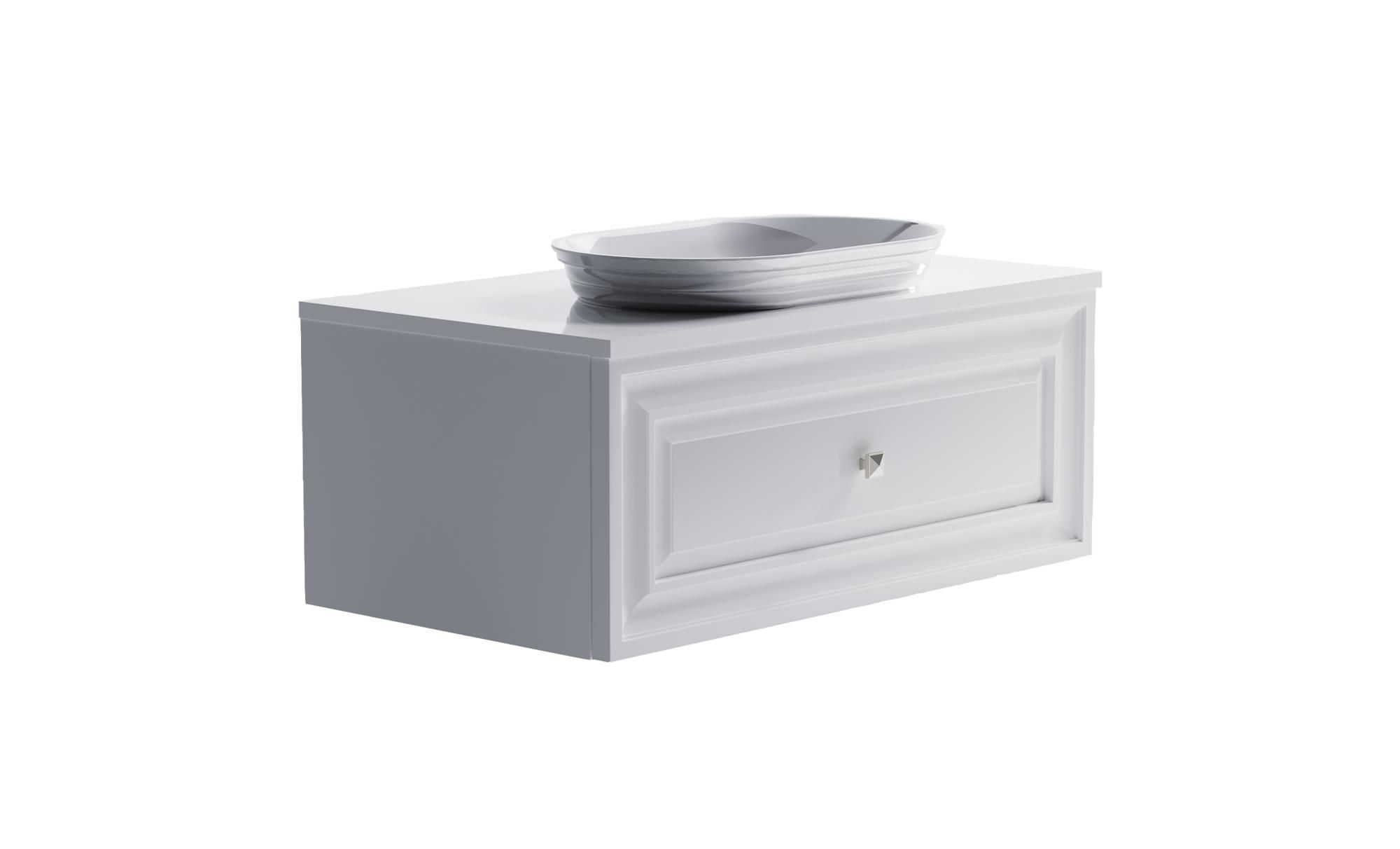 Комплектация: Нижний шкаф Шарм 900 с 1 ящиком с вырезом (белый матовый) + Столешница "Шарм" 900 мм + Раковина "Шарм"