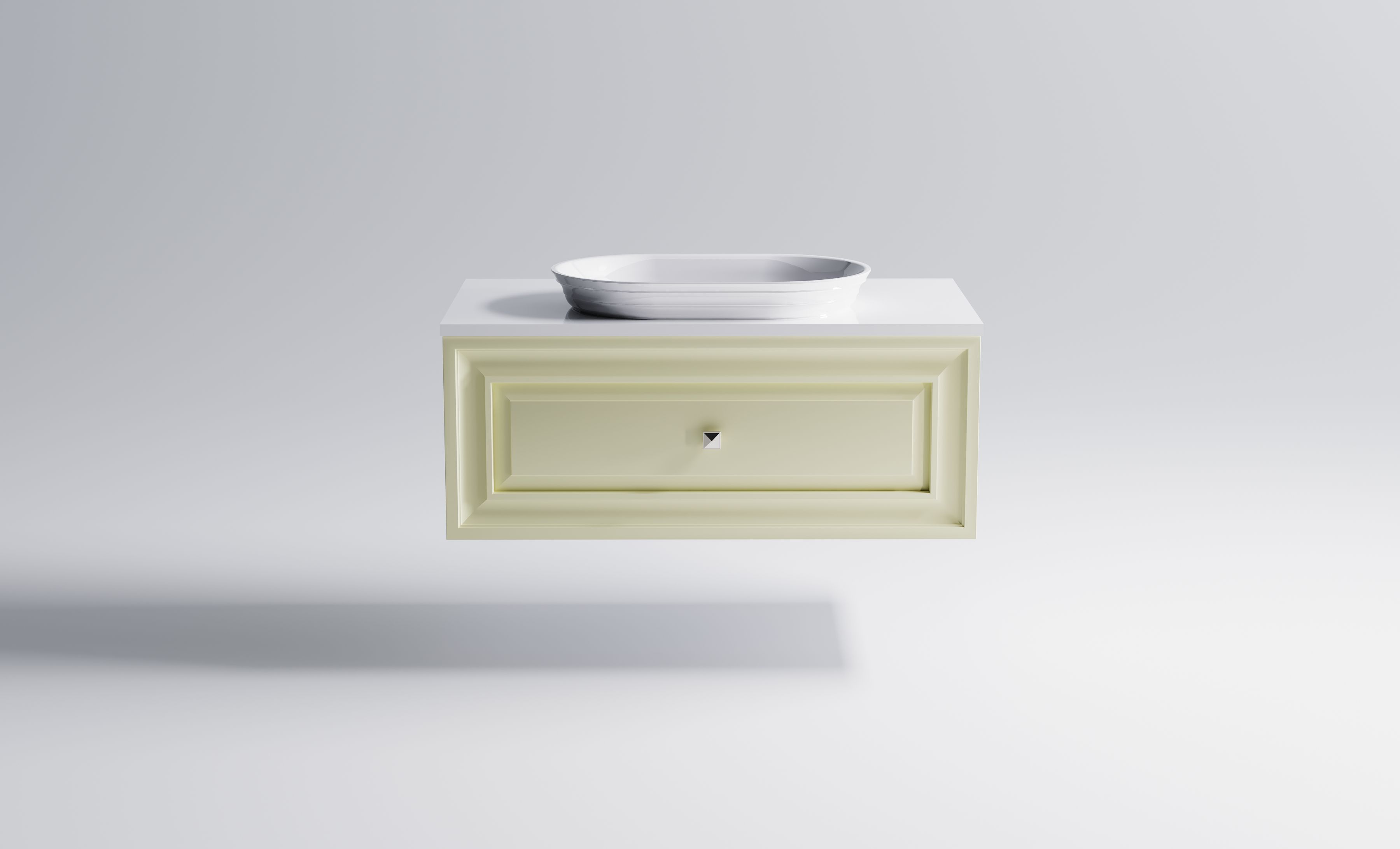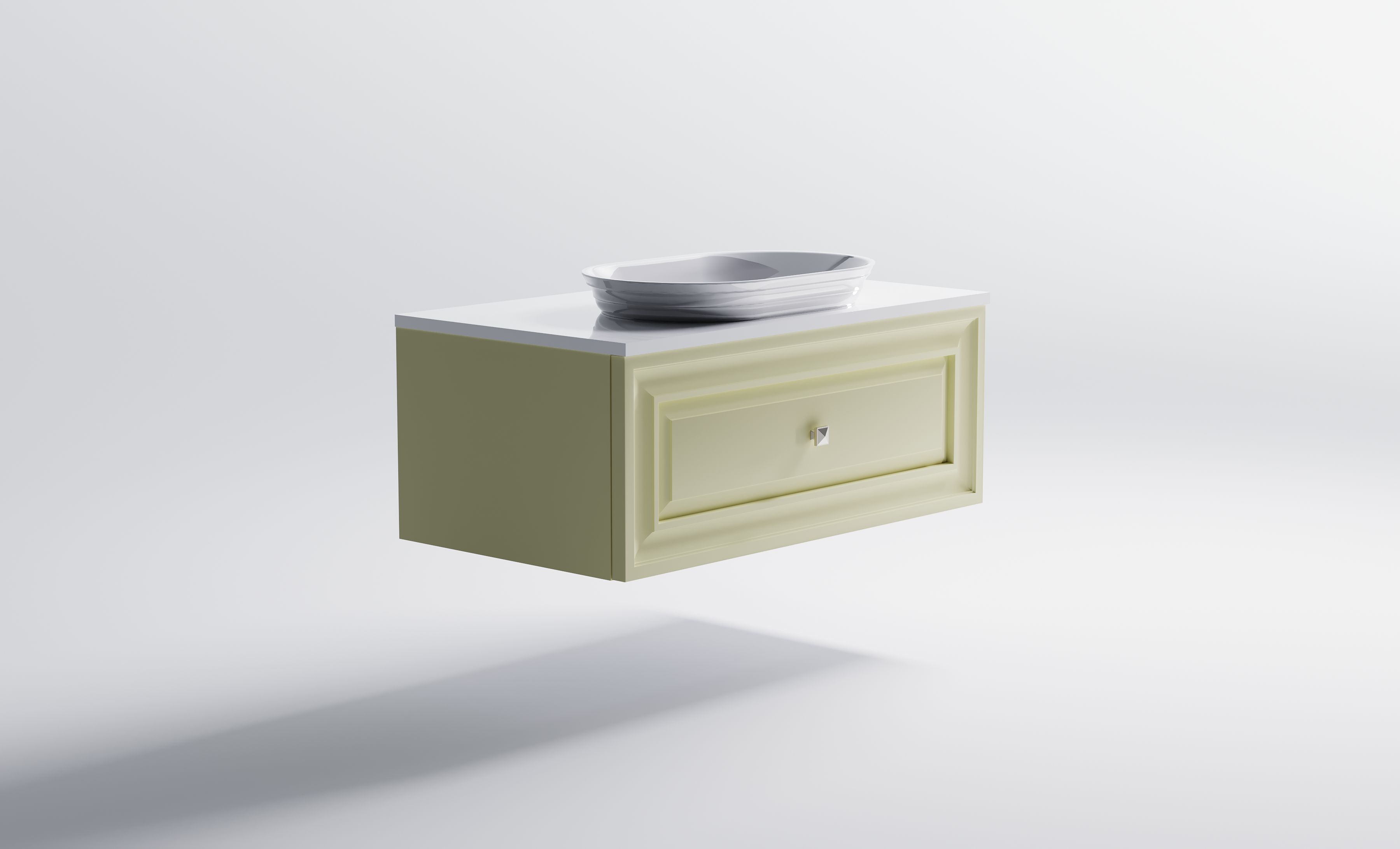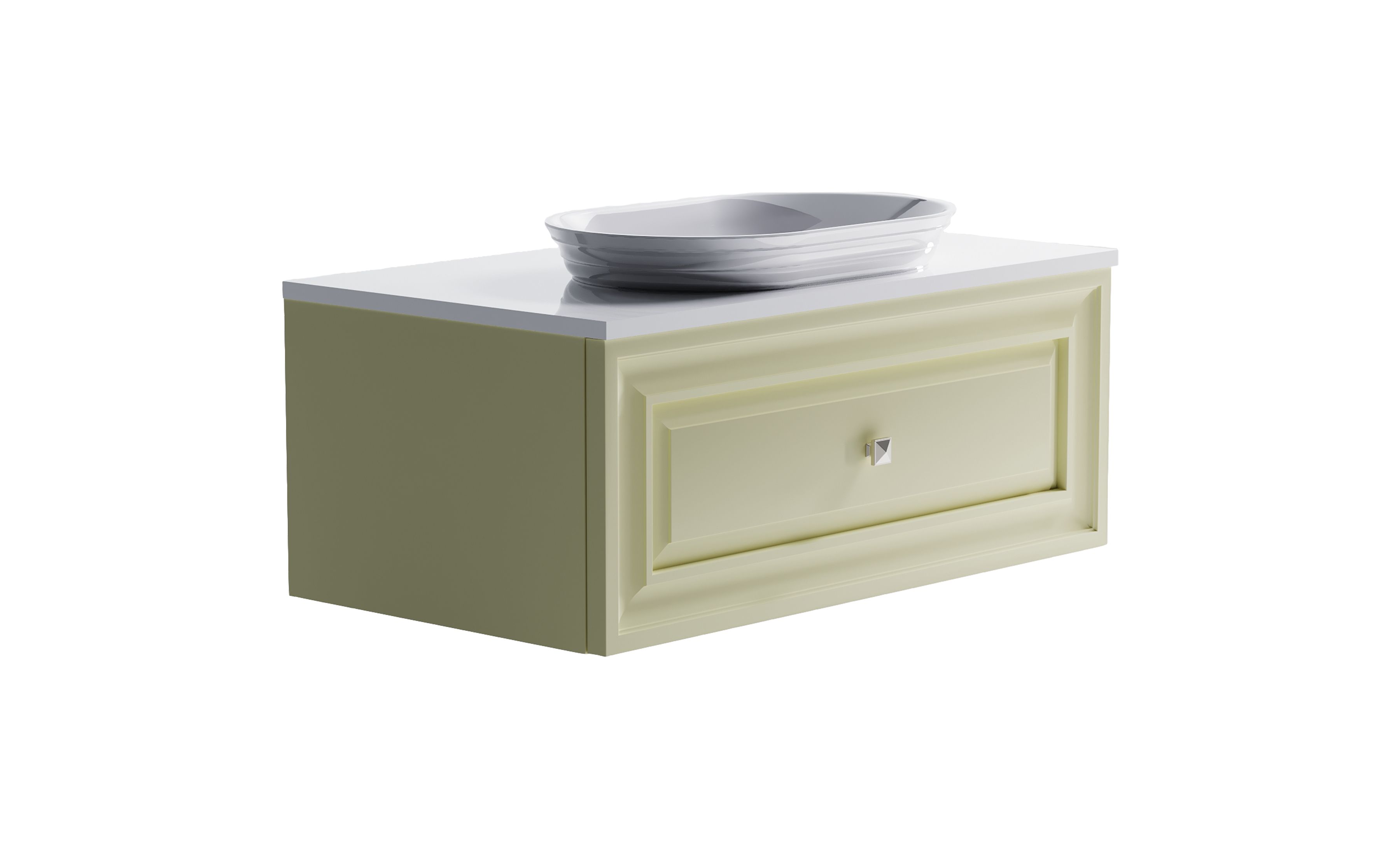 Комплектация: Нижний шкаф Шарм 1000 с 1 ящиком с вырезом бежевый (RAL1013 матовый) + Столешница "Шарм" 1000 мм + Раковина "Шарм" 55х35