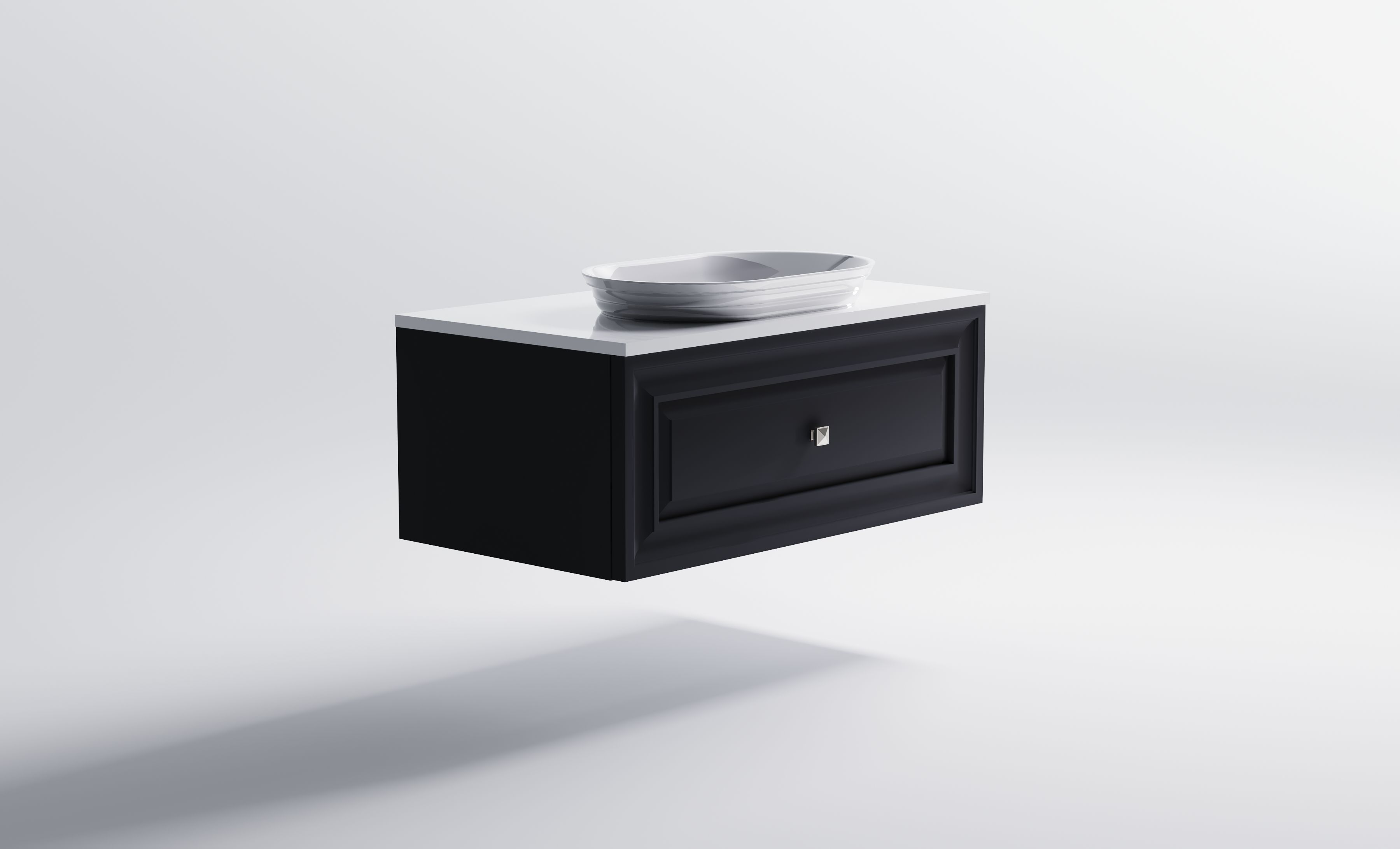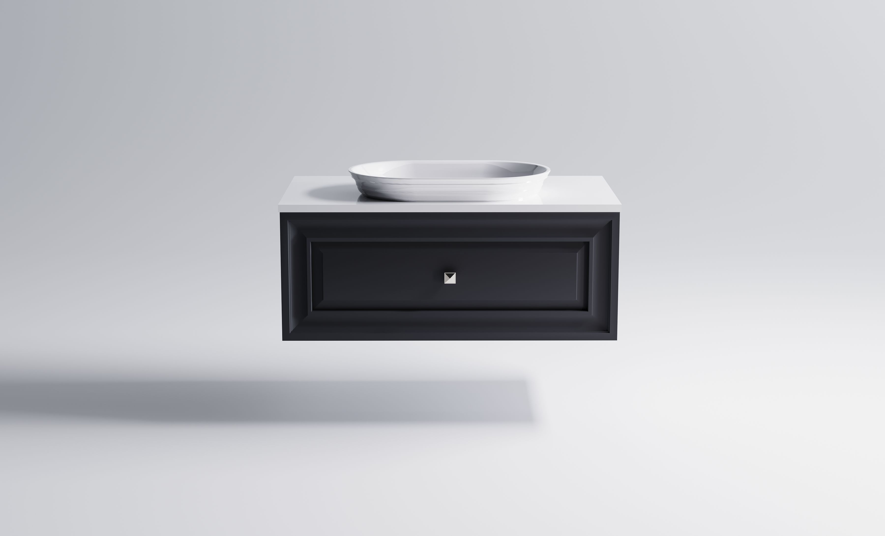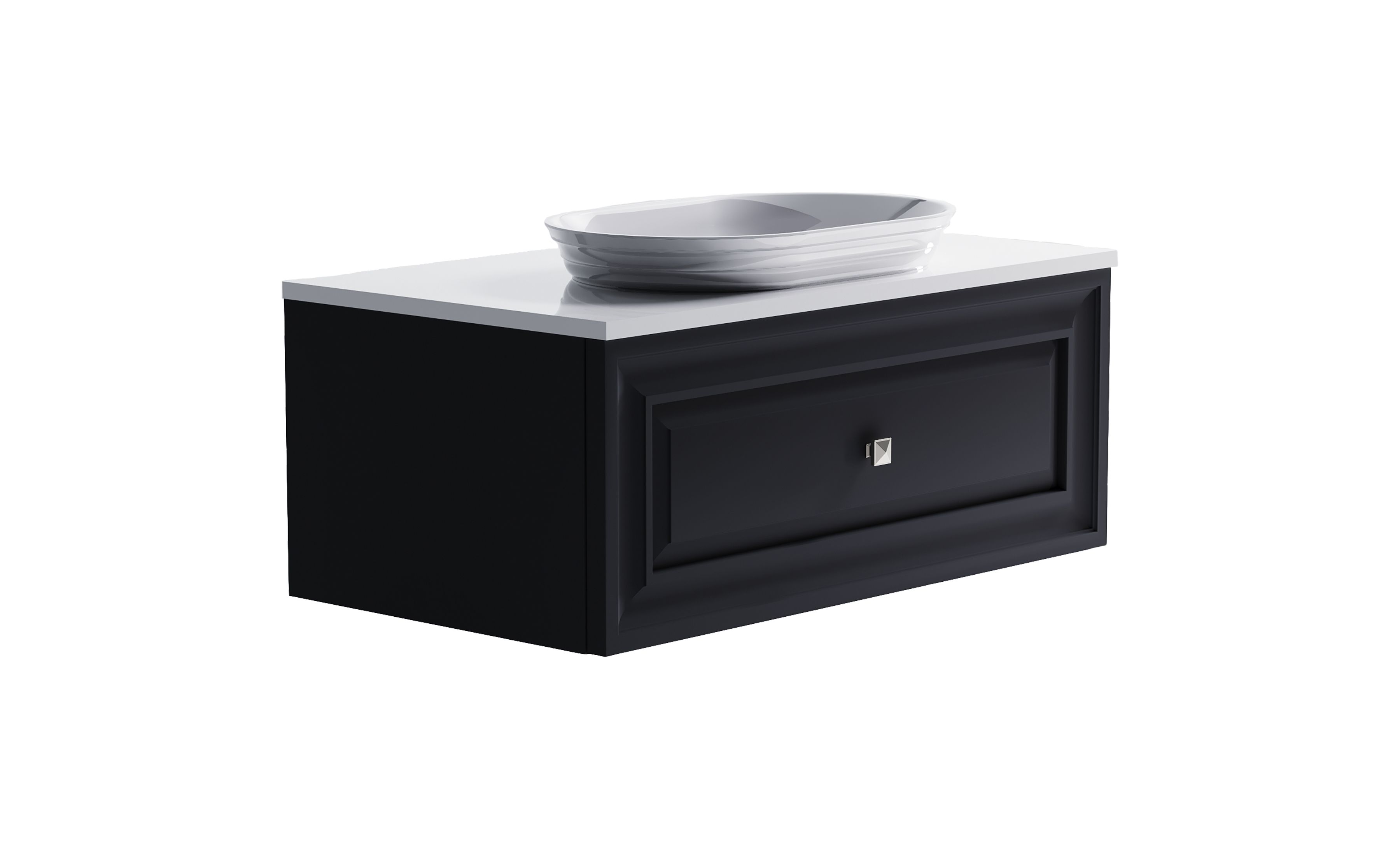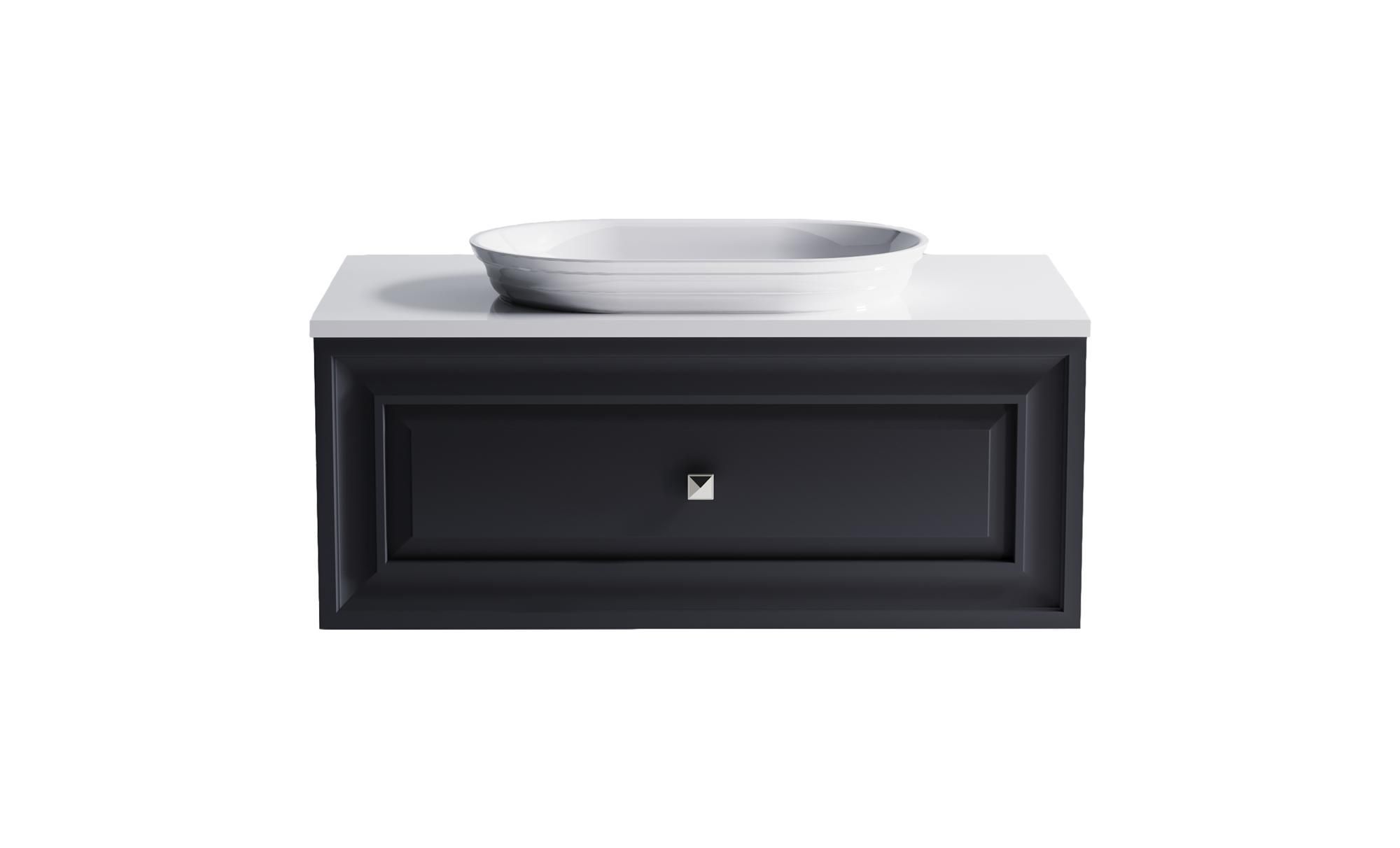 Комплектация: Нижний шкаф Шарм 1000 с 1 ящиком с вырезом темно-серый (RAL7024 матовый) + Столешница "Шарм" 1000 мм + Раковина "Шарм" 55х35