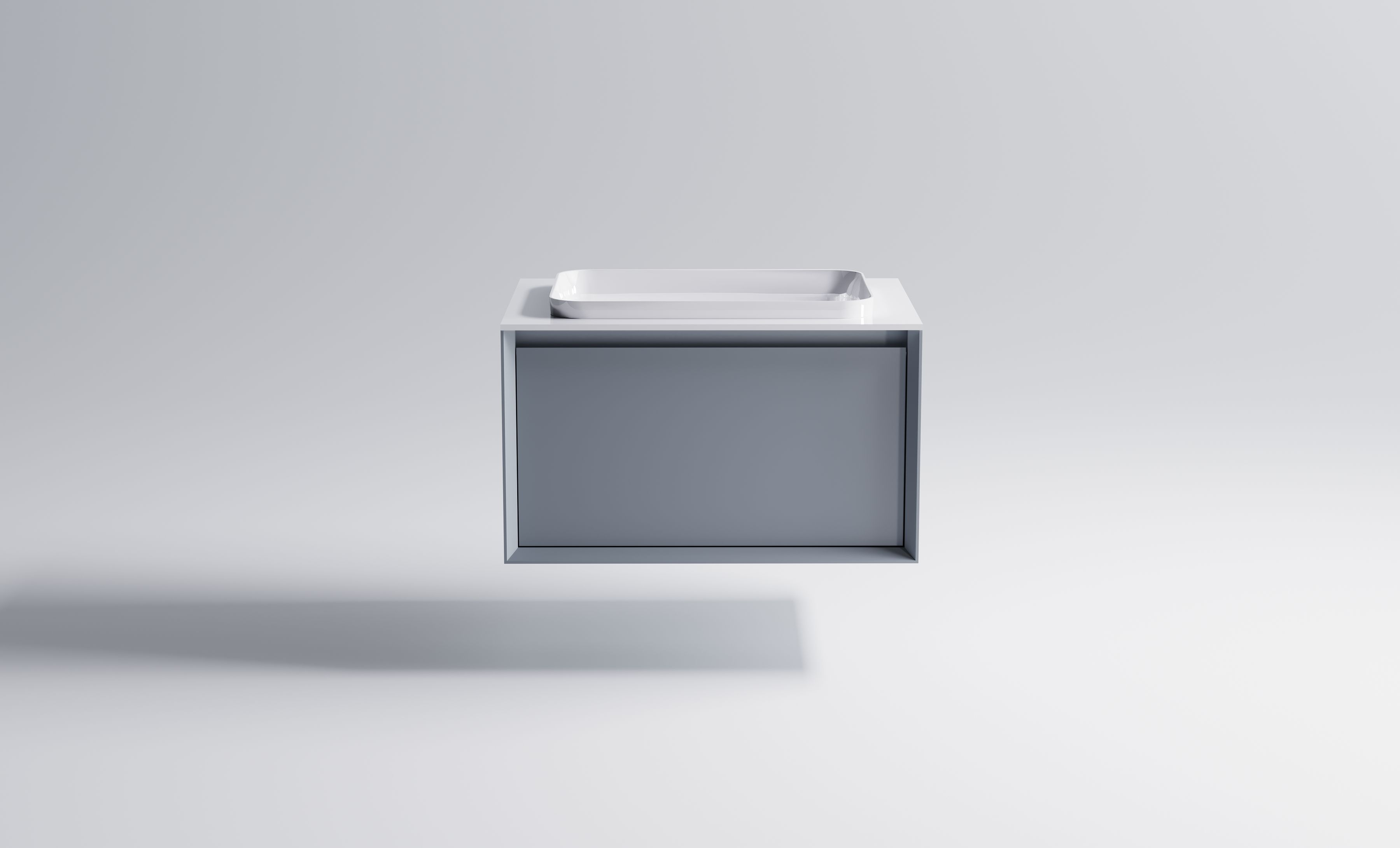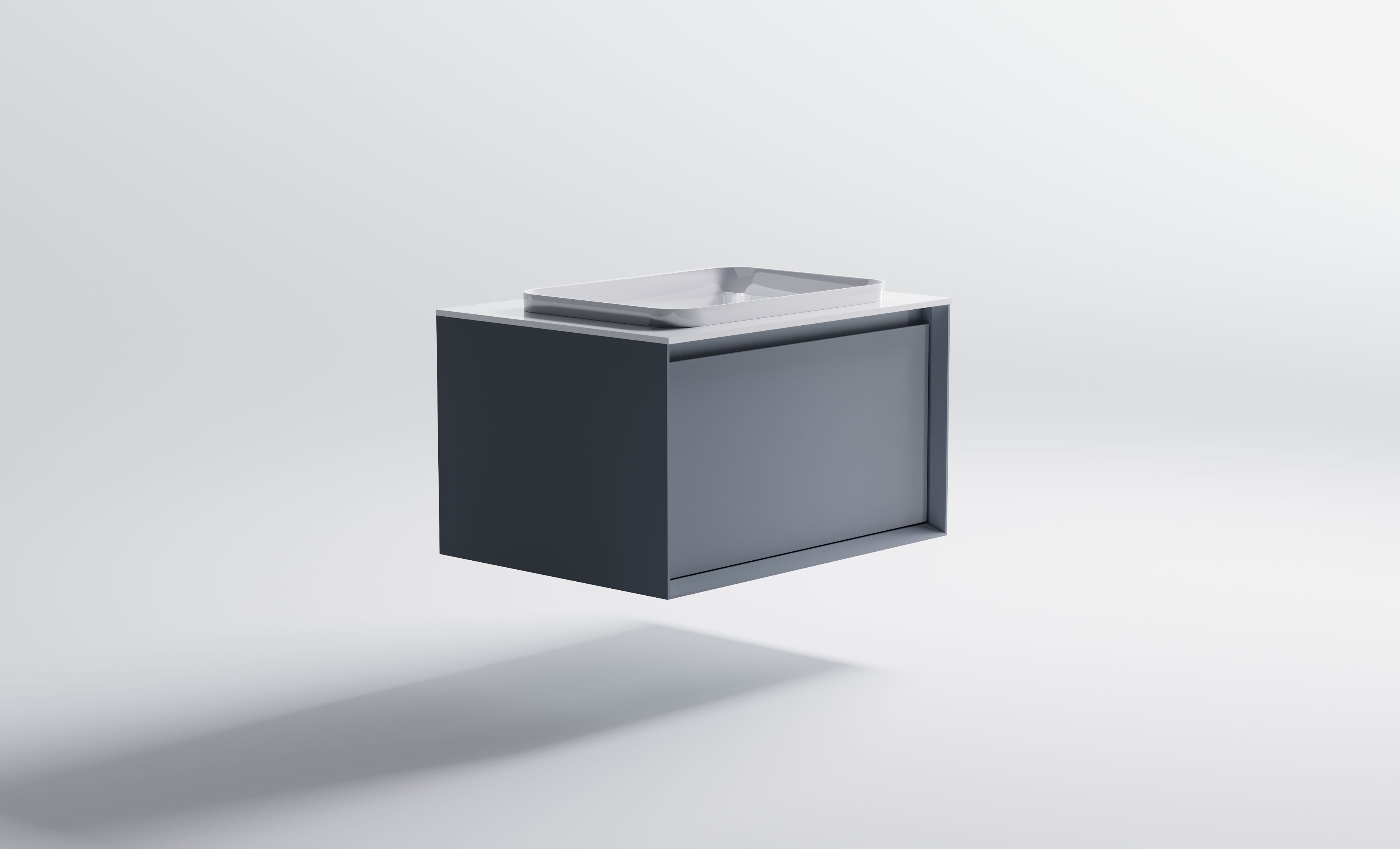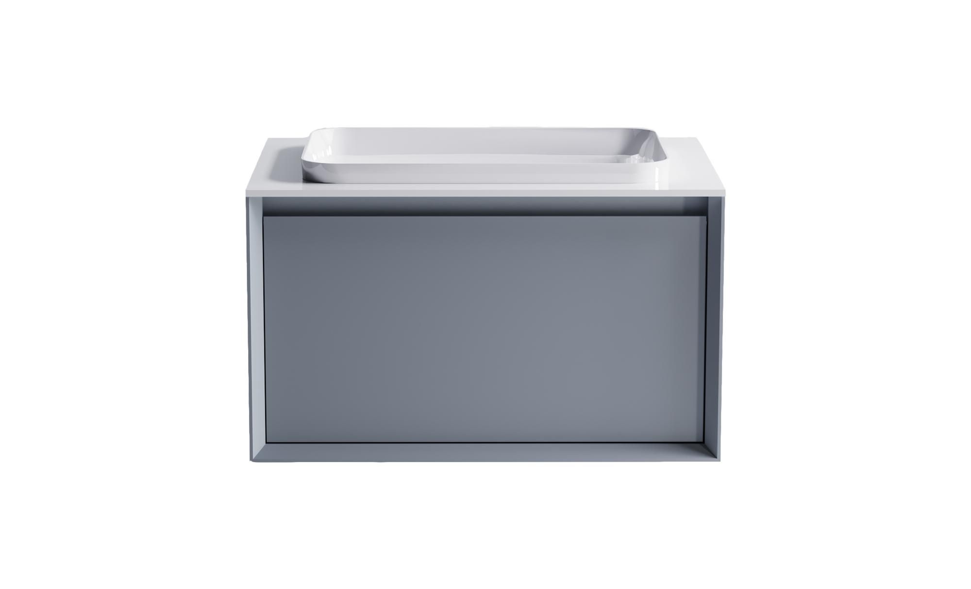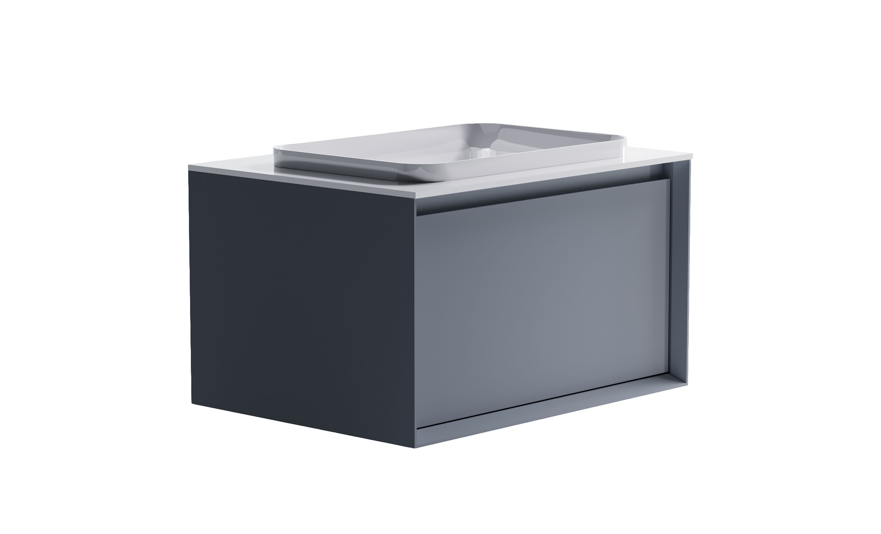 Комплектация: Нижний Шкаф Фрейм 700 с 1 ящиком серо-голубой (NCS S 3005-R80B матовый) + Столешница "Фрейм" 700 мм + Раковина "Антарес" 55х38 (30мм над уровнем столешницы)