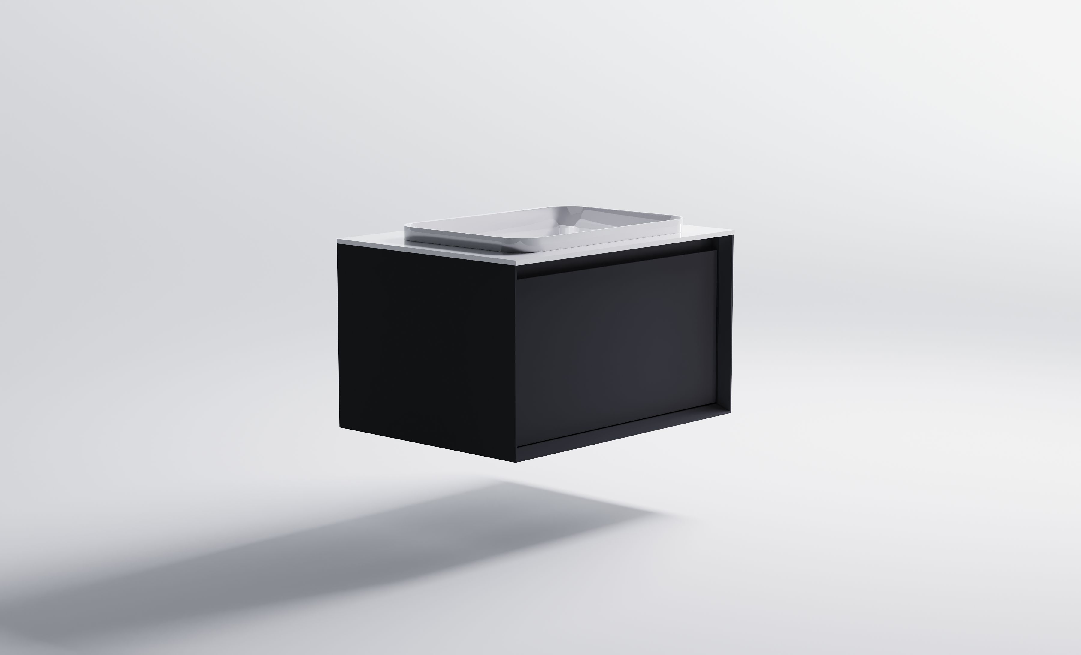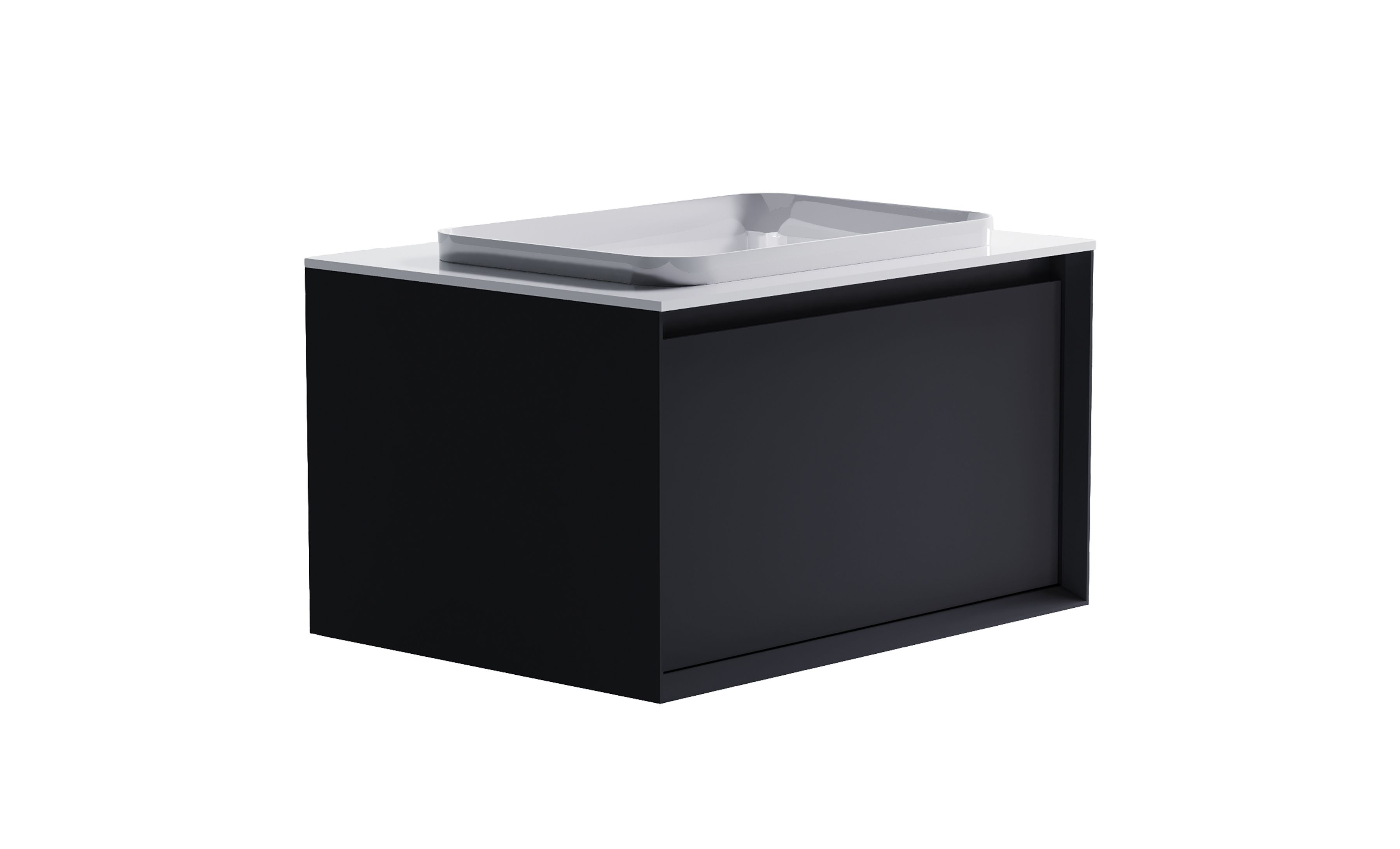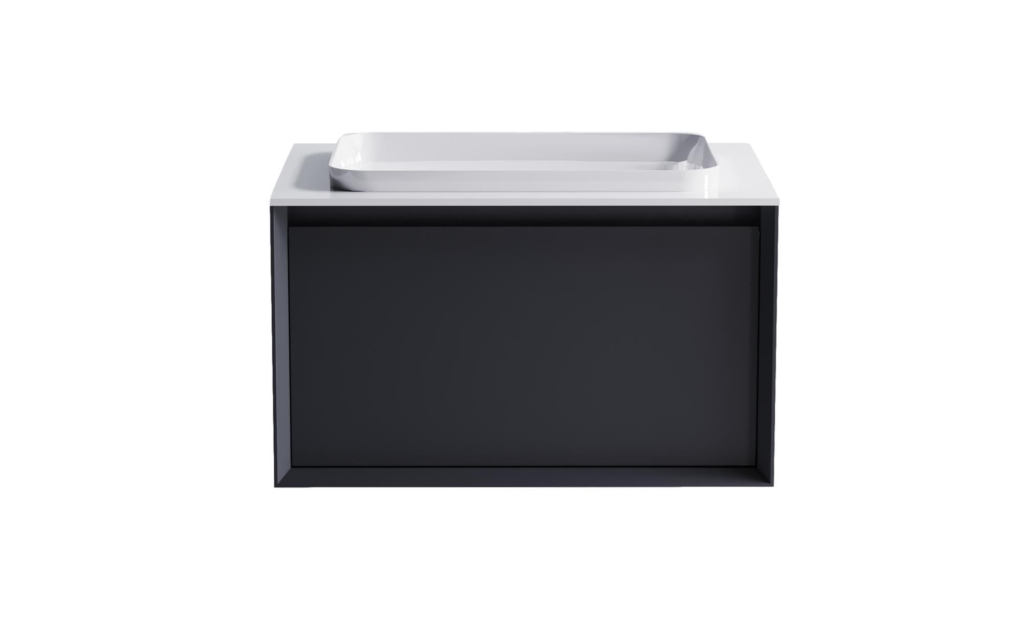 Комплектация: Нижний Шкаф Фрейм 700 с 1 ящиком темно-серый (RAL7024 матовый) + Столешница "Фрейм" 700 мм + Раковина "Антарес" 55х38 (30мм над уровнем столешницы)