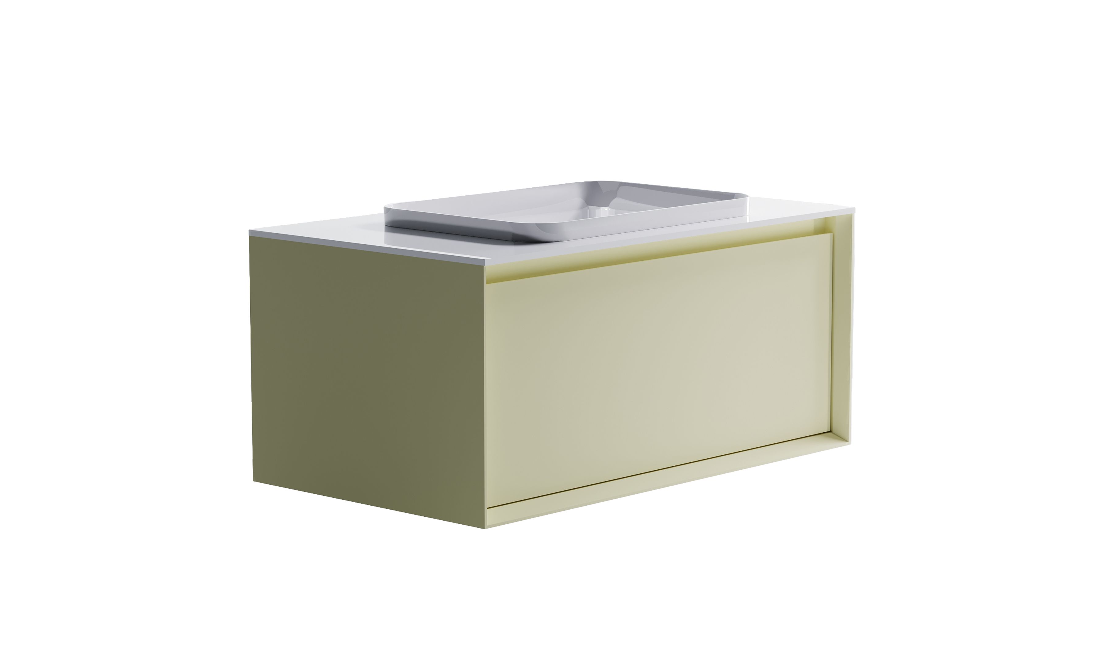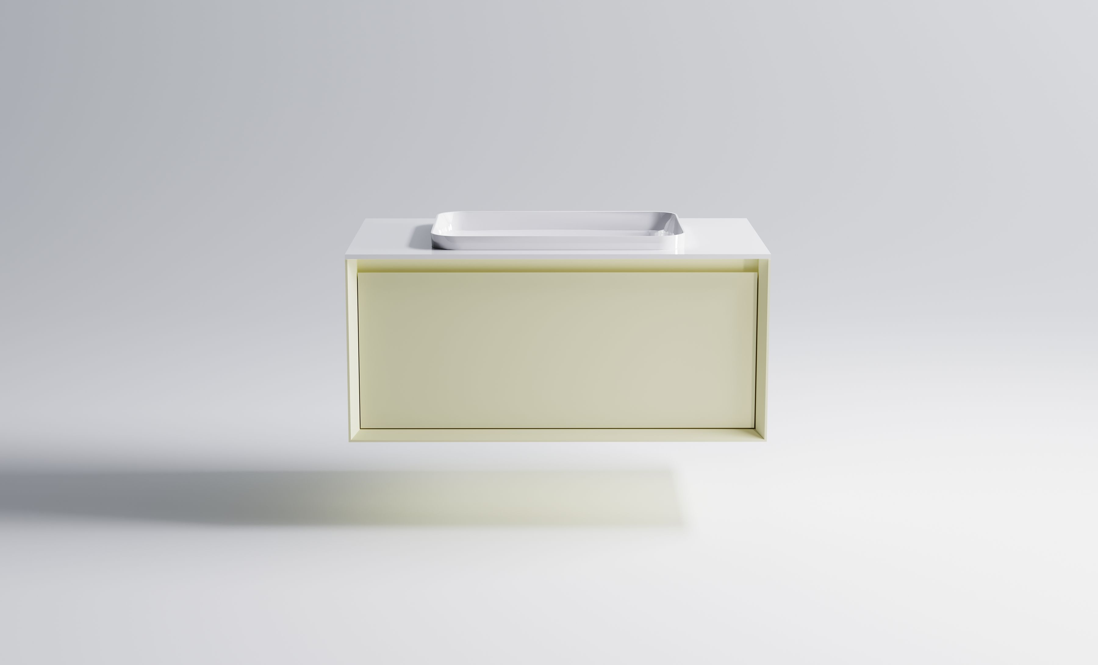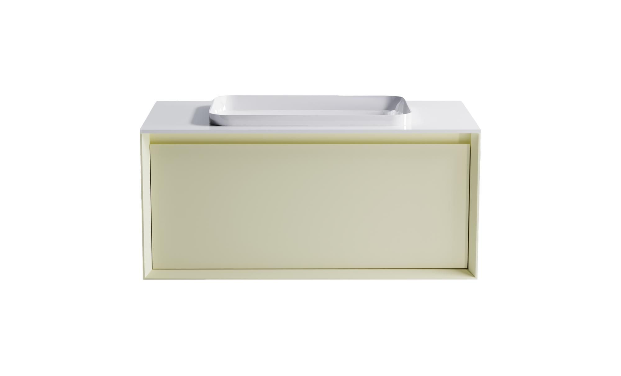 Комплектация: Нижний Шкаф Фрейм 1000 с 1 ящиком бежевый (RAL1013 матовый) + Столешница "Фрейм" 1000 мм + Раковина "Антарес" 55х38 (30мм над уровнем столешницы)