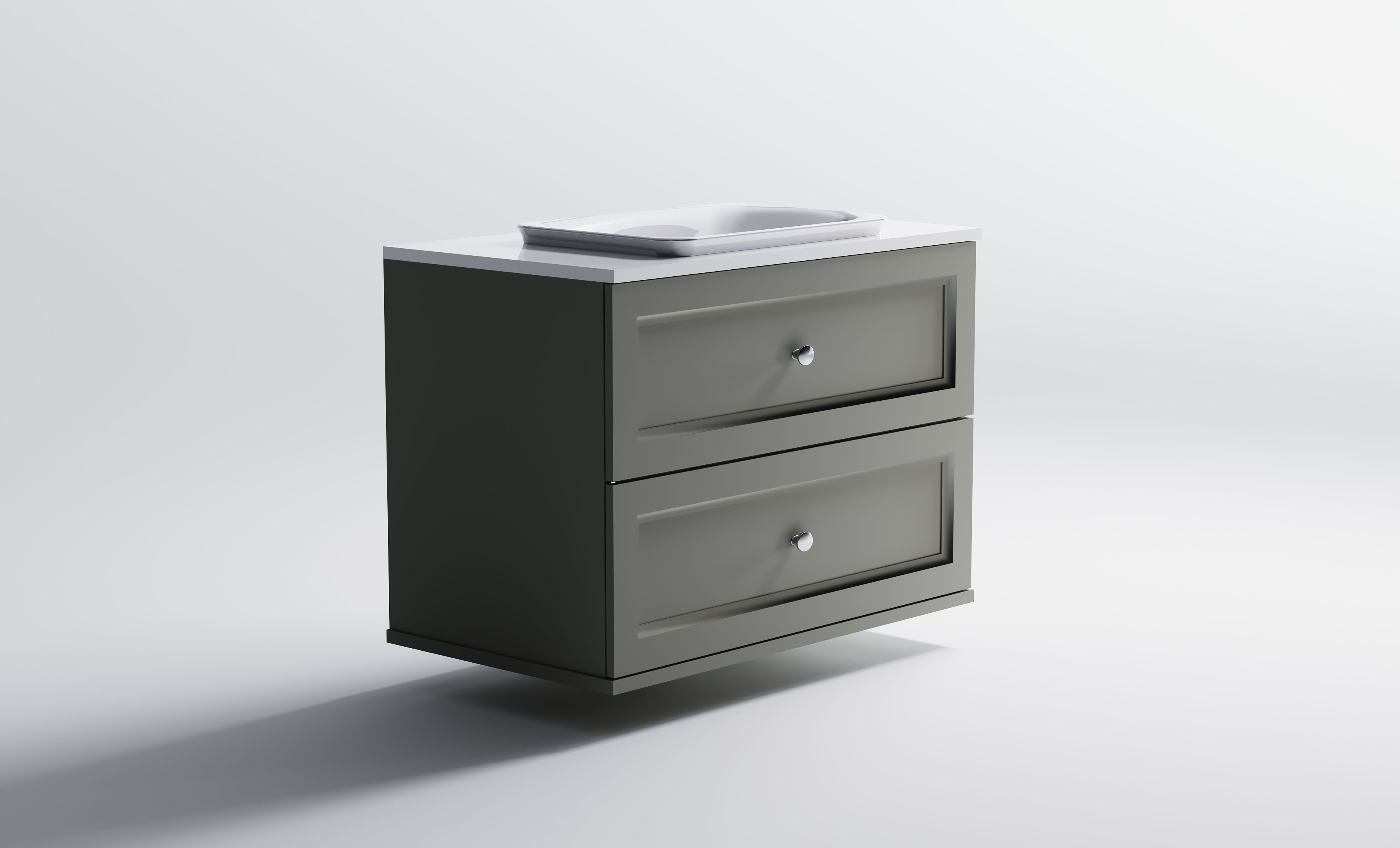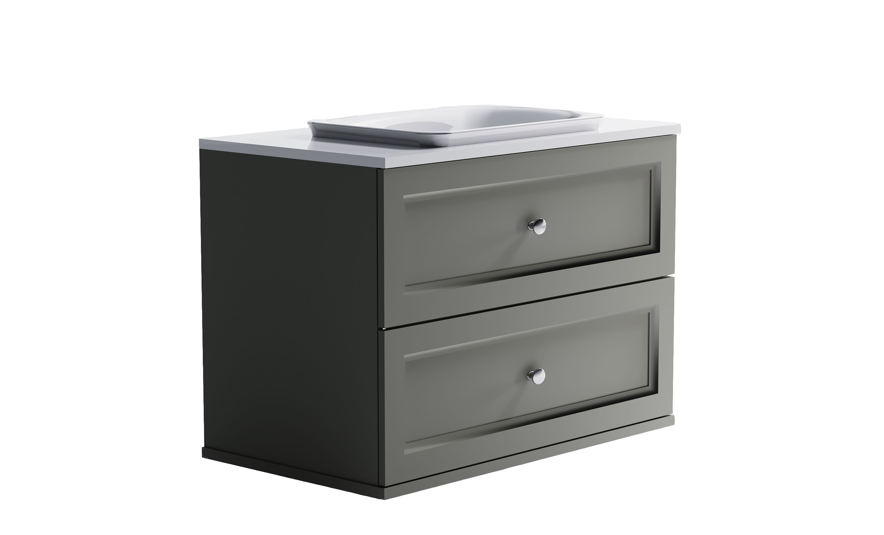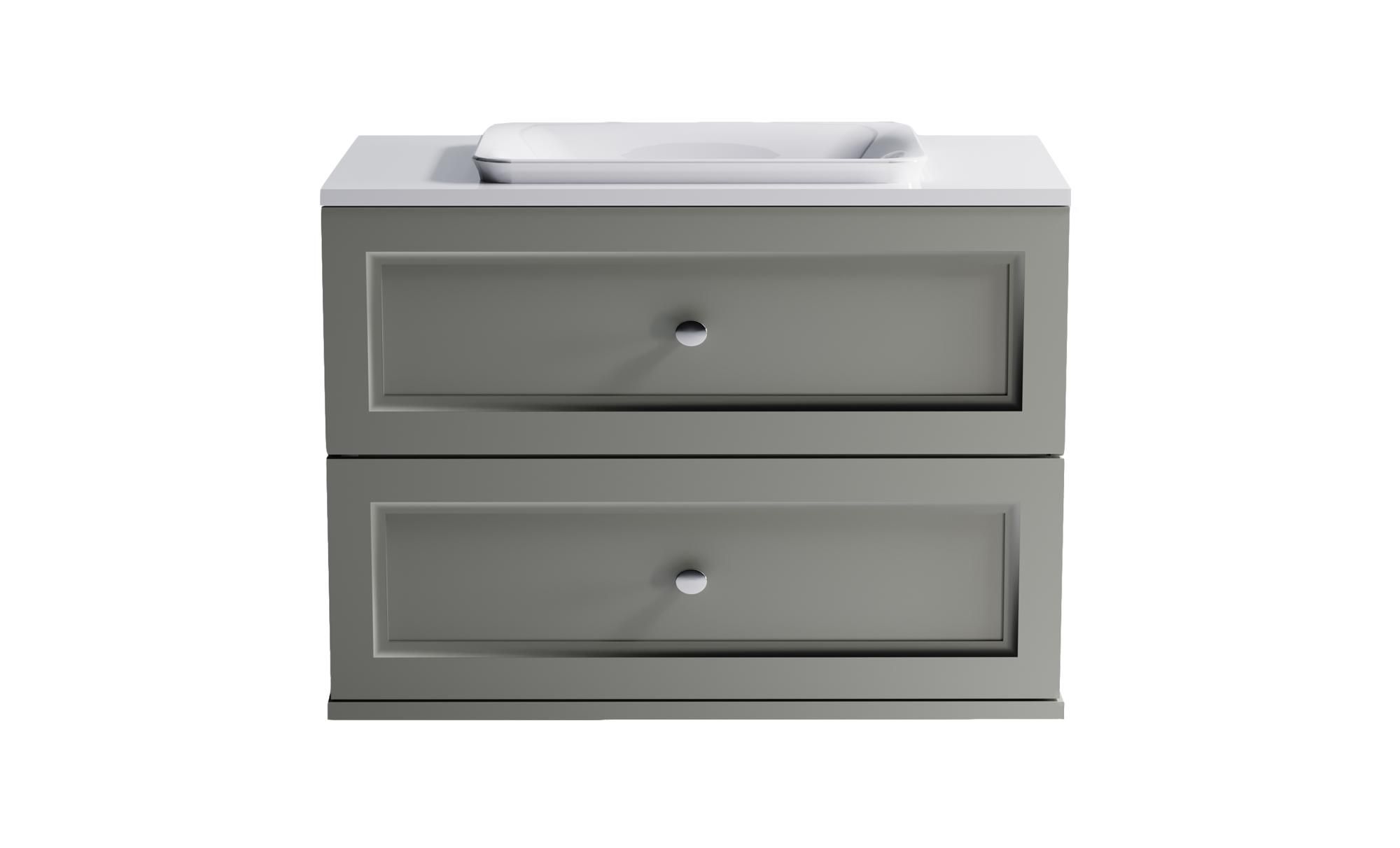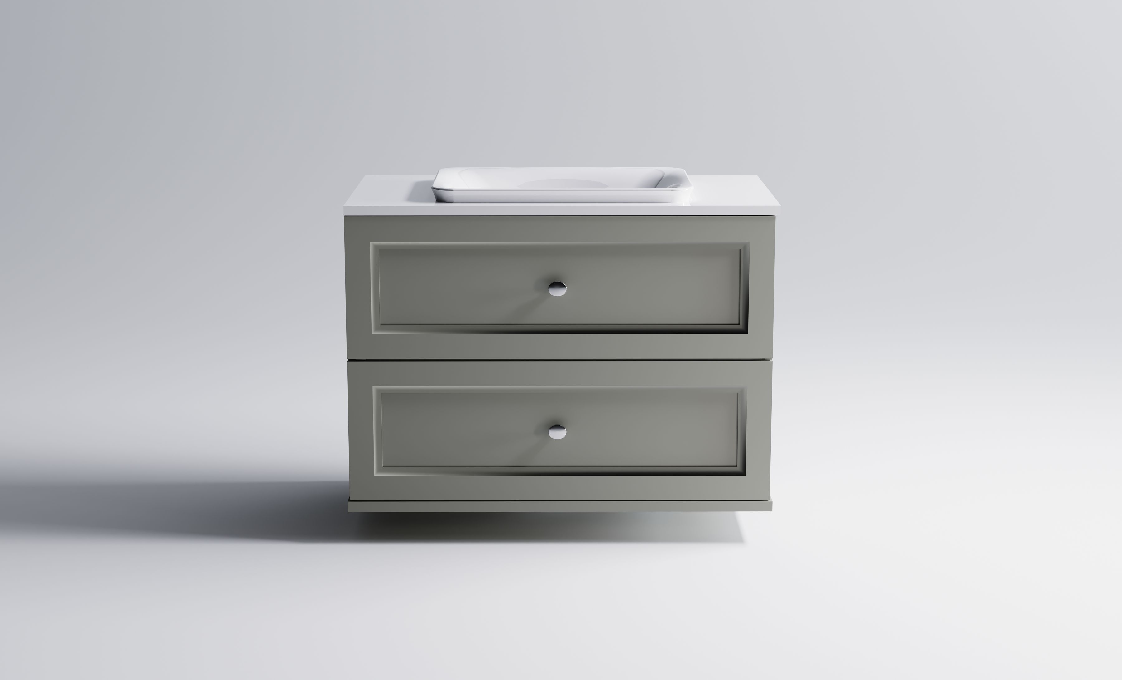 Комплектация: Нижний шкаф Классик 90 с 2 ящиками серо-бежевый (NCS S 3502-Y матовый) + Столешница "Классик" 900 мм + Раковина "Ретро"