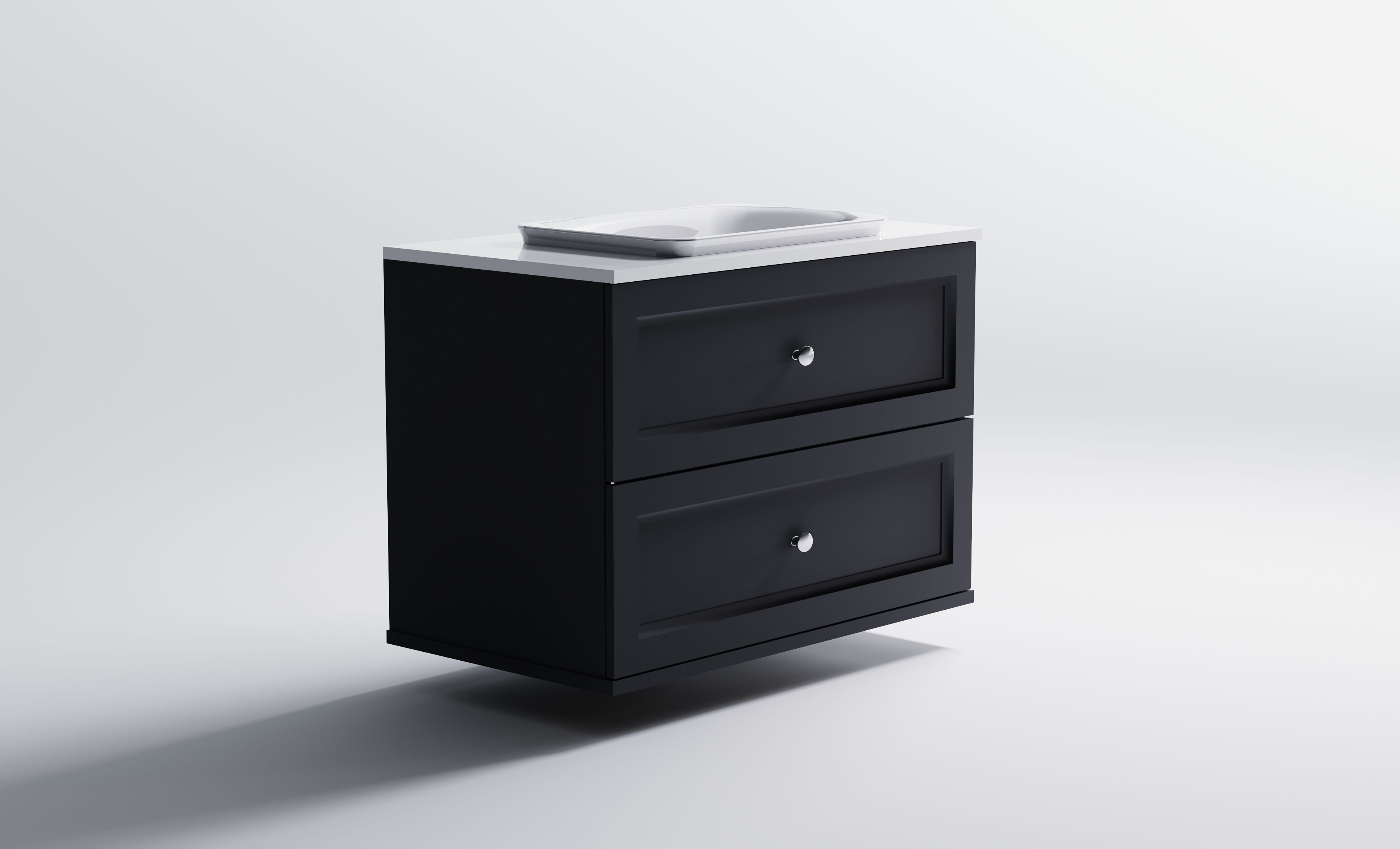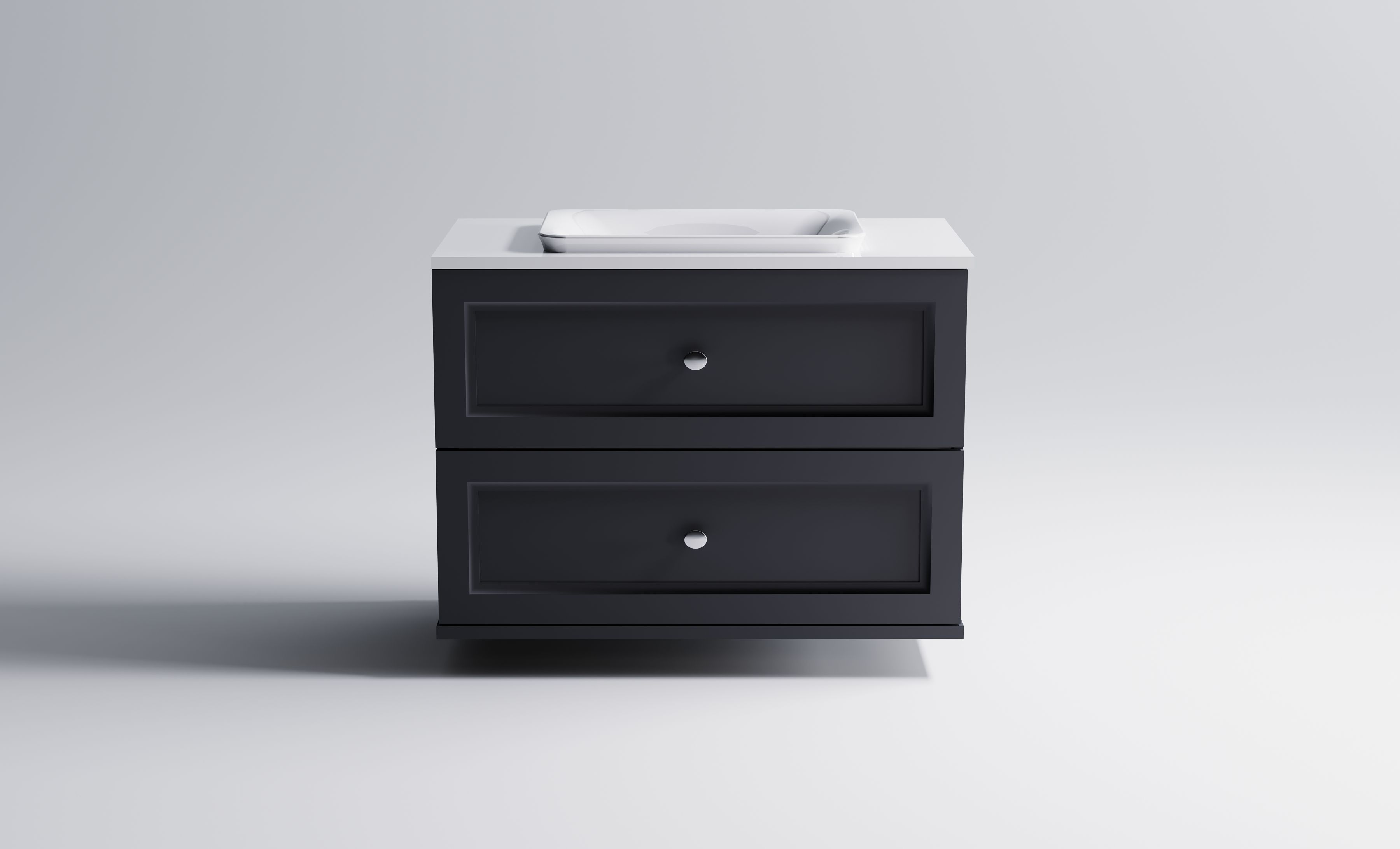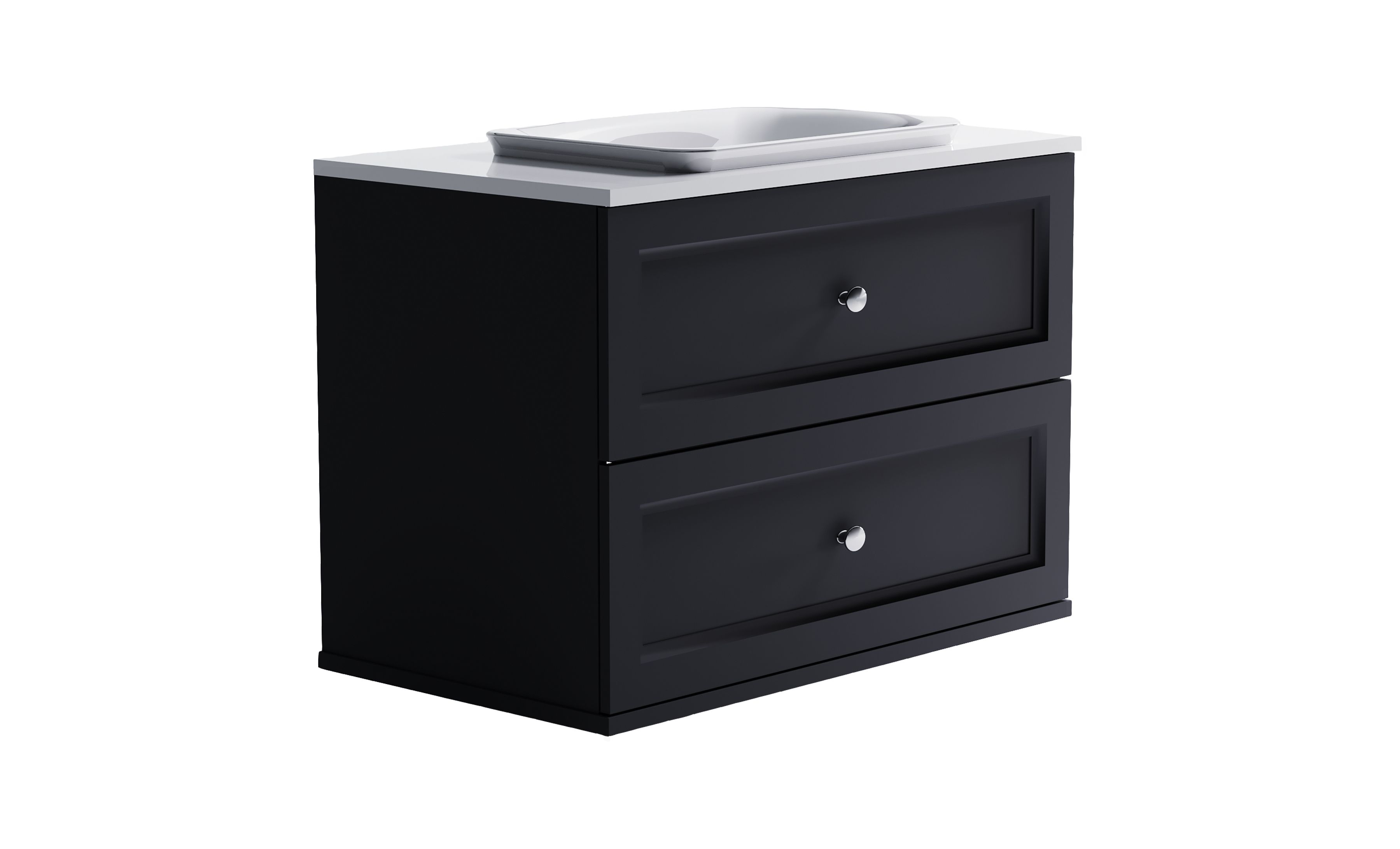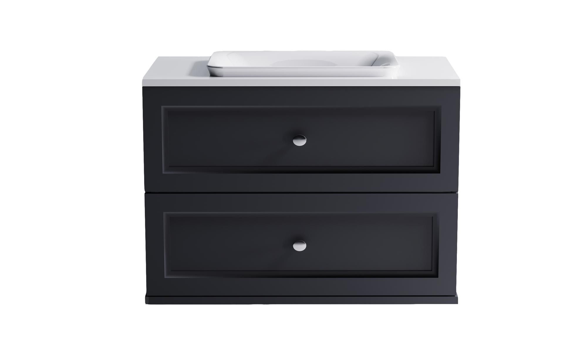 Комплектация: Нижний шкаф Классик 90 с 2 ящиками темно-серый (RAL7024 матовый) + Столешница "Классик" 900 мм + Раковина "Ретро"