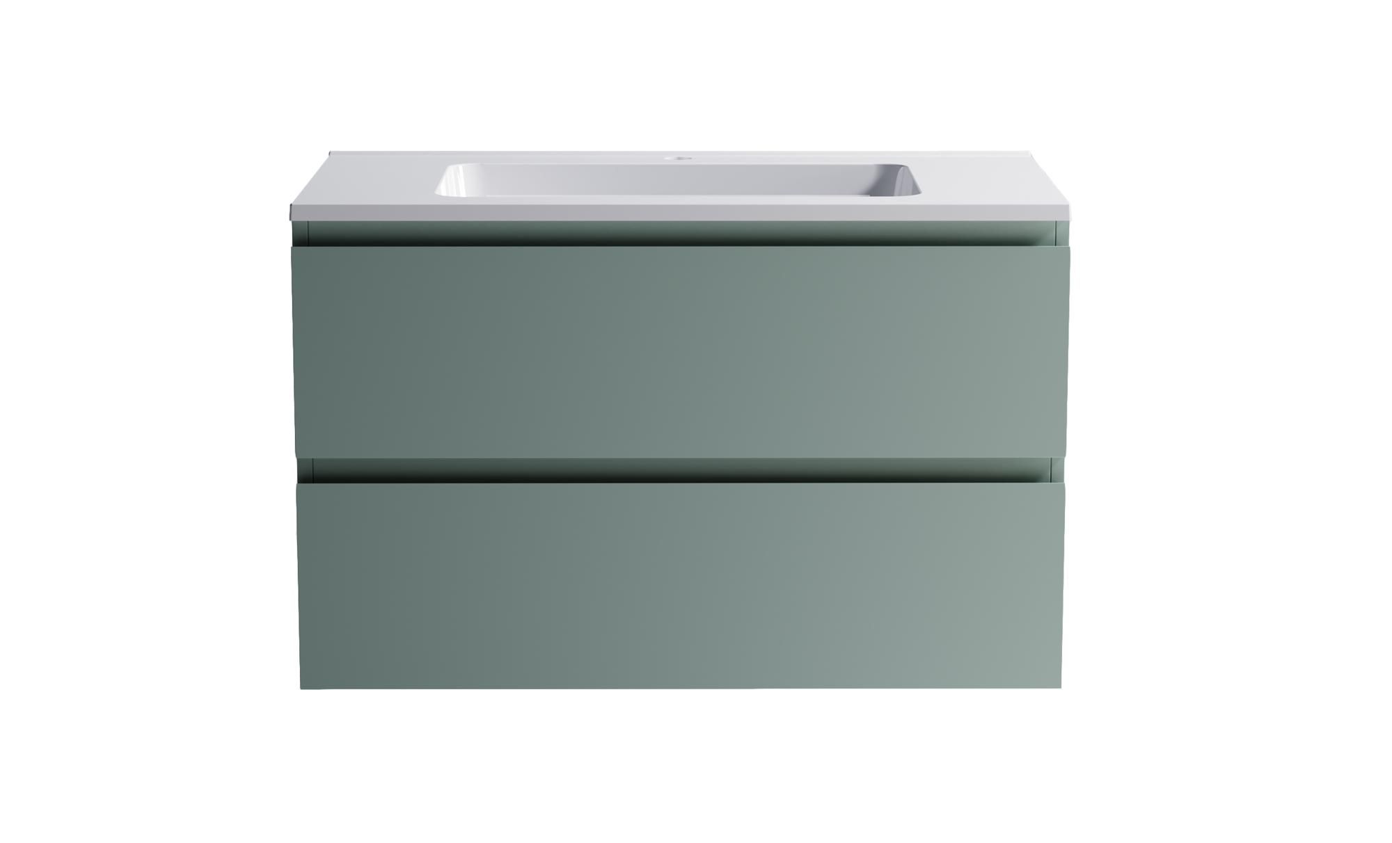 Комплектация: Нижний шкаф Альфа 90 с 2 ящиками зеленый (NCS S 3005-B80G матовый) + Раковина "Альфа 90"