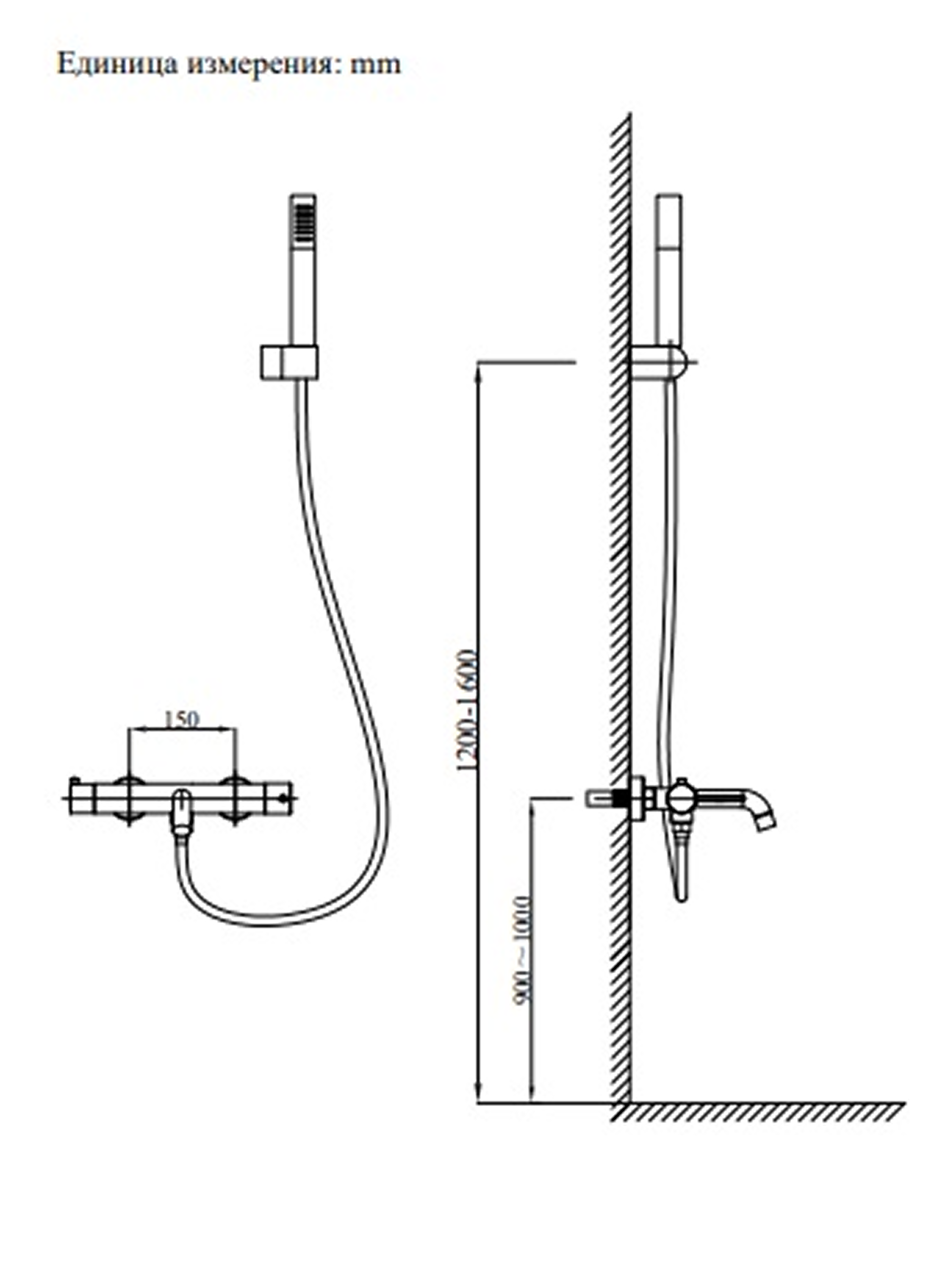 Комплектация: смеситель настенного монтажа, латунный ручной душ, держатель для ручного душа, гибкий полимерный шланг, аэратор, эксцентрики, чаши декоративные